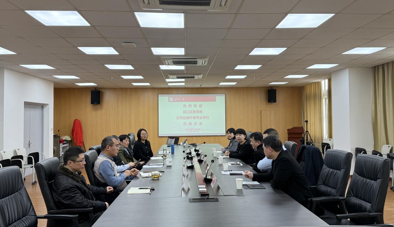 2025年3月11日下午,吴江区教育局与苏州丝绸中等专业学校代表团莅临我院,双方聚焦学生培养、师资队伍建设、就业导向以及实习实践等关键领域,展开了深入研讨。此次交流旨在增进校际合作,为教育资源的优化整合与共享开辟新路径。