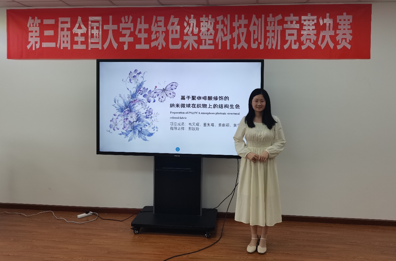 二等奖 | 基于聚咖啡酸修饰的纳米微球在织物上的结构生色 | 韦天琛,董奥晴,姜鑫颖,黄宇 | 刑铁岭 |