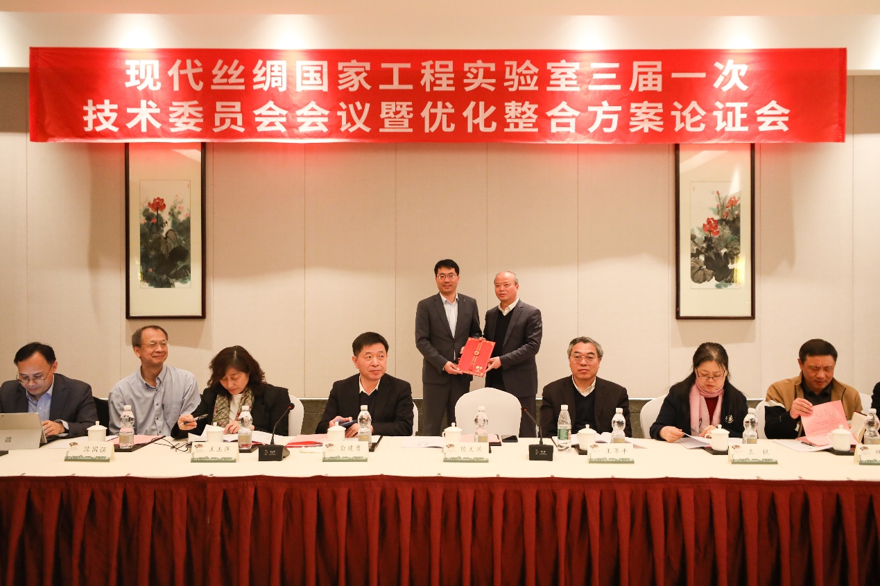 李孝峰向各位院士和专家的到来表示热烈欢迎。他表示,国家工程实验室作为国家科技创新体系的重要组成部分,是国家战略科技力量的重要载体,是支撑学校“双一流”建设和高质量办学发展的重要平台,现代丝绸国家工程实验室是目前学校唯一一家国家级科研平台,学校一直以来高度重视科研平台的建设和发展。面对国家科技创新基地优化整合的新要求和新部署,学校将现代丝绸国家工程实验室优化整合作为学校工作的重中之重,主动横向整合各类优质资源,不断优化组织机制,举全校之力推进优化整合工作。在此次优化整合过程中,希望各位专家从行业的高度、专业的角度,为我校实验室优化整合工作把脉问诊,为实验室优化整合工作指明方向。李孝峰宣读现代丝绸国家工程实验室技术委员会委员名单并颁发聘书。纺织与服装工程学院院长张克勤从实验室基本情况、实验室目前优化整合进展、实验室优化整合过程中存在的不足和下一步工作思路等几个方面进行情况介绍。