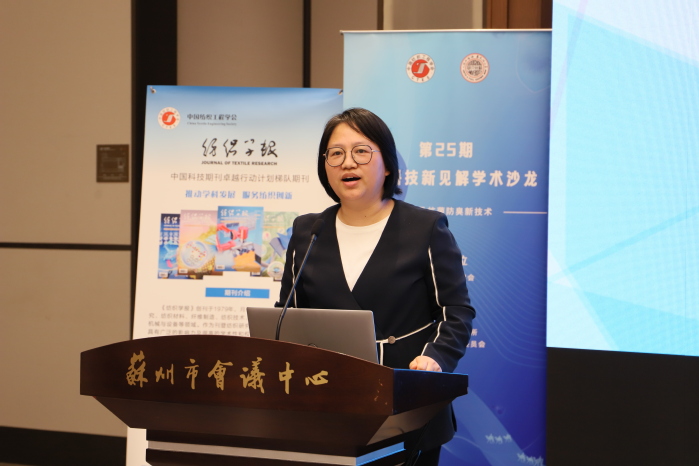 会议最后,中国纺织工程学会副秘书长、《纺织学报》副主编张洪玲介绍了约稿事宜。本期沙龙中各位专家及学者分享的新技术、新成果、新观点将会刊登在《纺织学报》上。