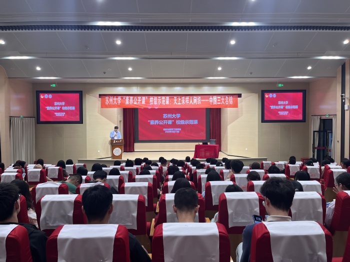 为弘扬中国优秀名锦文化,5月13日,苏州大学“素养公开课”校级示范课“天上采样人间织——中国三大名锦”在天赐庄校区红楼学术报告厅如期举行。本次公开课由苏州大学纺织与服装工程学院团委承办,苏州丝绸博物馆原副馆长、国家级非物质文化遗产项目宋锦织造技艺代表性传承人沈惠应邀授课。苏州大学团委副书记徐娜,纺织与服装工程学院党委副书记、副院长甄勇出席活动,苏州大学“青年马克思主义者培养工程”春季班学员、纺织与服装工程学院2024级本科生、研究生参与活动。