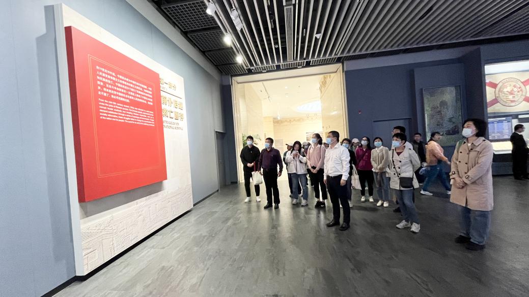 一行人从“伟大的开端——中国共产党创建历史陈列”序厅起步,先后参观了“历史选择伟大起点”“前仆后继救亡图存”“民众觉醒主义抉择”“早期组织星火初燃”“开天辟地日出东方”“砥砺前行光辉历程”“不忘初心牢记使命永远奋斗”等七大板块,回顾了中国共产党的诞生历程。大家怀着十分崇敬的心情瞻仰了中共一大会议室原址、中共一大代表群像浮雕,仔细阅读墙上的史实记载,感知眼前饱经沧桑的历史物件。