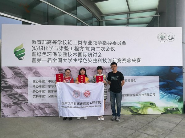 本次大赛共有四川大学、东华大学、浙江理工大学等全国20多高校进80个项目团队参赛。我院代表苏州大学积极动员轻化工程专业相关学生参与其中,组织参赛。经过项目预审、专家初审、项目复审、决赛答辩。我院王祥荣老师指导的《植物色素转印技术及产品》项目荣获了一等奖,关晋平老师指导的《基于生物质的静电层层自组装法制备阻燃抗菌有色真丝绸》项目、邢铁玲老师指导的《基于多巴胺的蚕丝生态染色研究》项目、郑敏老师指导的《天然燃料染色的纳米抗菌纺织品及抗菌性能可视化研究》项目、龙家杰老师指导的《纤维素类纺织品的光催化低温生态剥色技术》项目均获得三等奖。