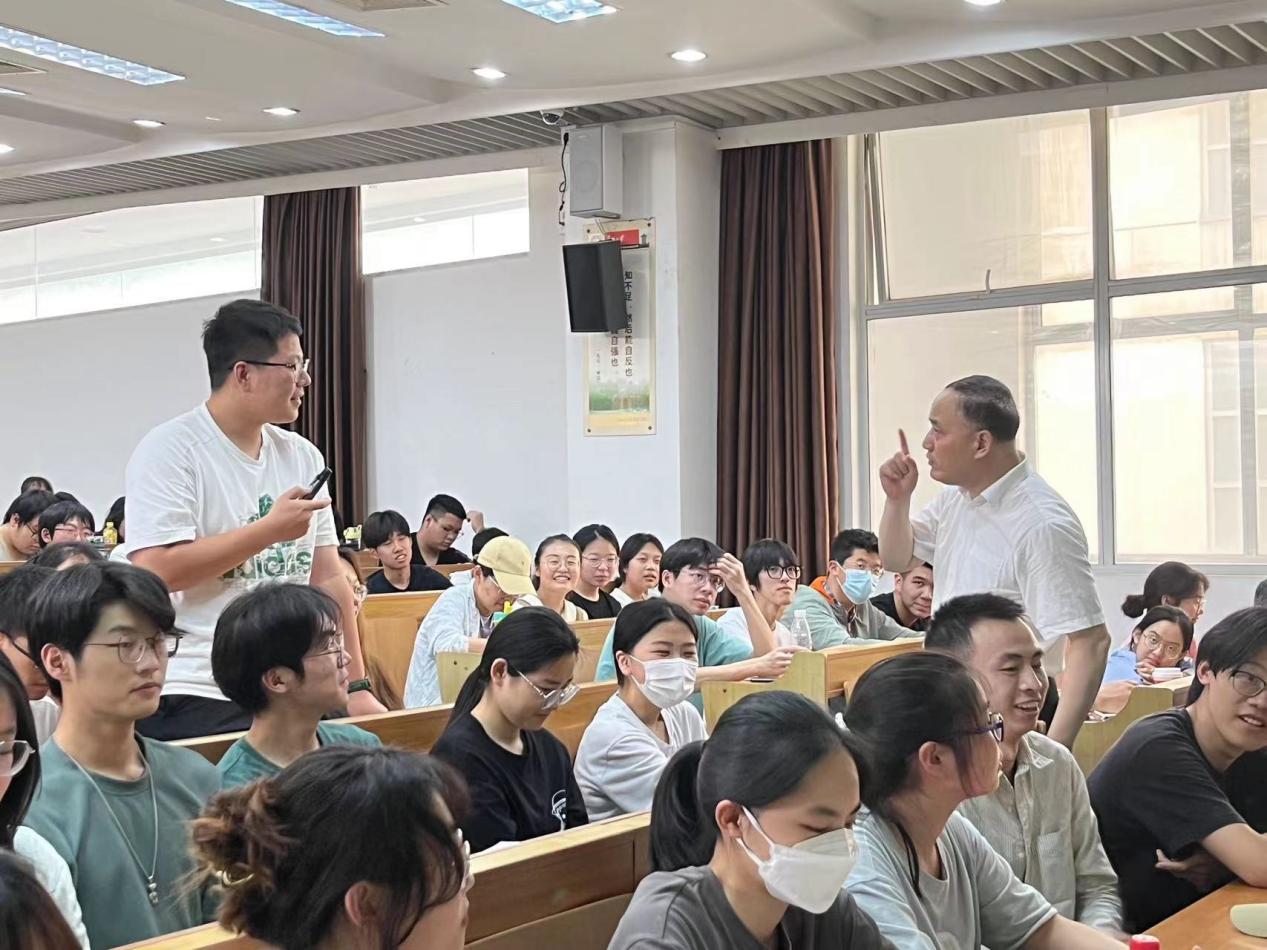 宫书记以“启发式、互动式、案例式”的新颖教学方法,详细介绍了2023年全国两会召开的背景、意义及议程,并从过去一年和五年的工作回顾及对今年政府工作的建议两个方面解读了政府工作报告,对全国两会期间习近平总书记发表的重要讲话、国务院机构改革进行了深入地分析。师生就“山东淄博烟火气”、“消费习惯转变”、“ChatGPT”等话题进行了热烈讨论。今年全国两会上,强国建设、民族复兴的宏伟目标令人鼓舞,催人奋进。宫书记鼓励同学们要坚定历史自信,增强历史主动,坚持守正创新,保持战略定力,发扬斗争精神,勇于攻坚克难,不断为强国建设、民族复兴伟业添砖加瓦、增光添彩。