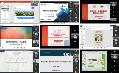 首先,上海工程技术大学纺织服装学院院长、纺织工程全英文专业虚拟教研室负责人辛斌杰教授致欢迎辞。然后,高伟洪副主任对上海工程技术大学纺织工程全英文专业建设情况进行了介绍。随后,江南大学马丕波教授,东华大学许福军教授、杜赵群教授,浙江理工大学张华鹏教授,伦敦大学学院周奉磊研究员,武汉纺织大学周熠副教授、中原工学院邱嘉文老师以及上海工程技术大学董琳、潘虹等老师对各自学校的全英文教学相关工作进行了介绍。