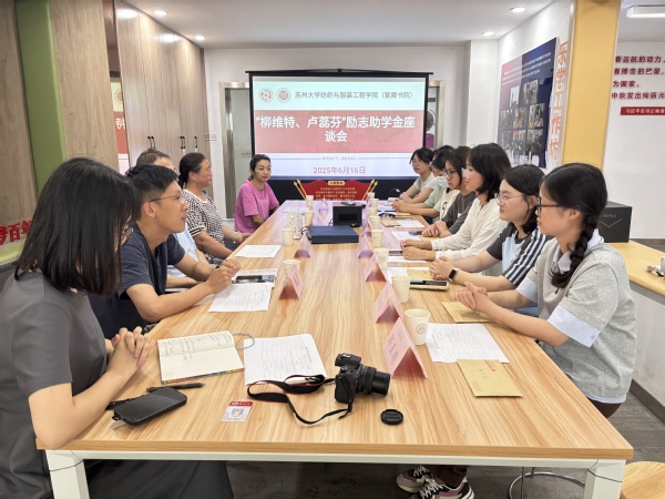6月16日下午,“柳维特、卢蕊芬”励志助学金座谈会在纺织与服装工程学院(紫卿书院)召开。新民纺织科技有限公司董事柳维特及其夫人卢蕊芬,总经理陈晓洁,学院党委副书记、副院长甄勇,8位“柳维特、卢蕊芬”励志助学金受助同学参加座谈会。会议由院学工办主任季彦斐主持。