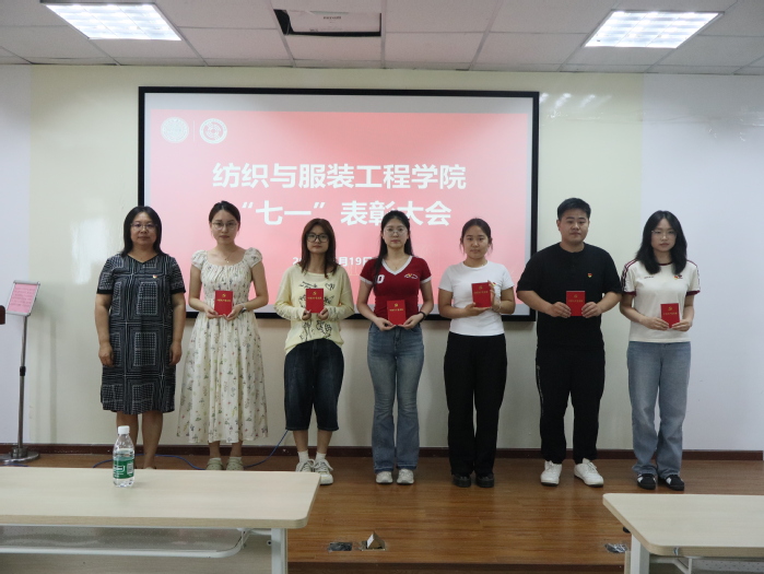 为庆祝中国共产党成立104周年,表彰先进典型,凝聚奋进力量,6月19日下午,纺织与服装工程学院“七一”表彰大会在北区工科楼619会议室举行。学院党委书记肖甫青,副院长关晋平,获表彰的先进集体和个人,各党支部书记,25年上半年新发展党员等参加活动。大会由学院党委副书记、副院长甄勇主持。