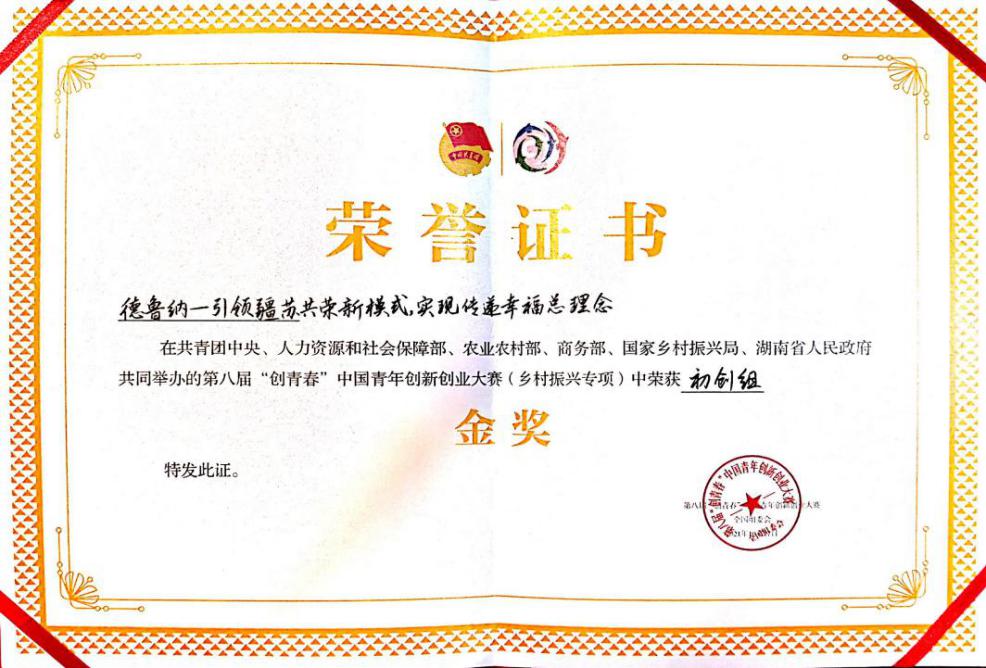 苏州大学纺织与服装工程学院(紫卿书院)创业实践项目:“德鲁纳——引领疆苏共荣新模式,实现传递幸福总理念”参加本届比赛,通过一轮又一轮过关斩将,最终荣获第八届“创青春”中国青年创新创业大赛(乡村振兴专项)初创组金奖。