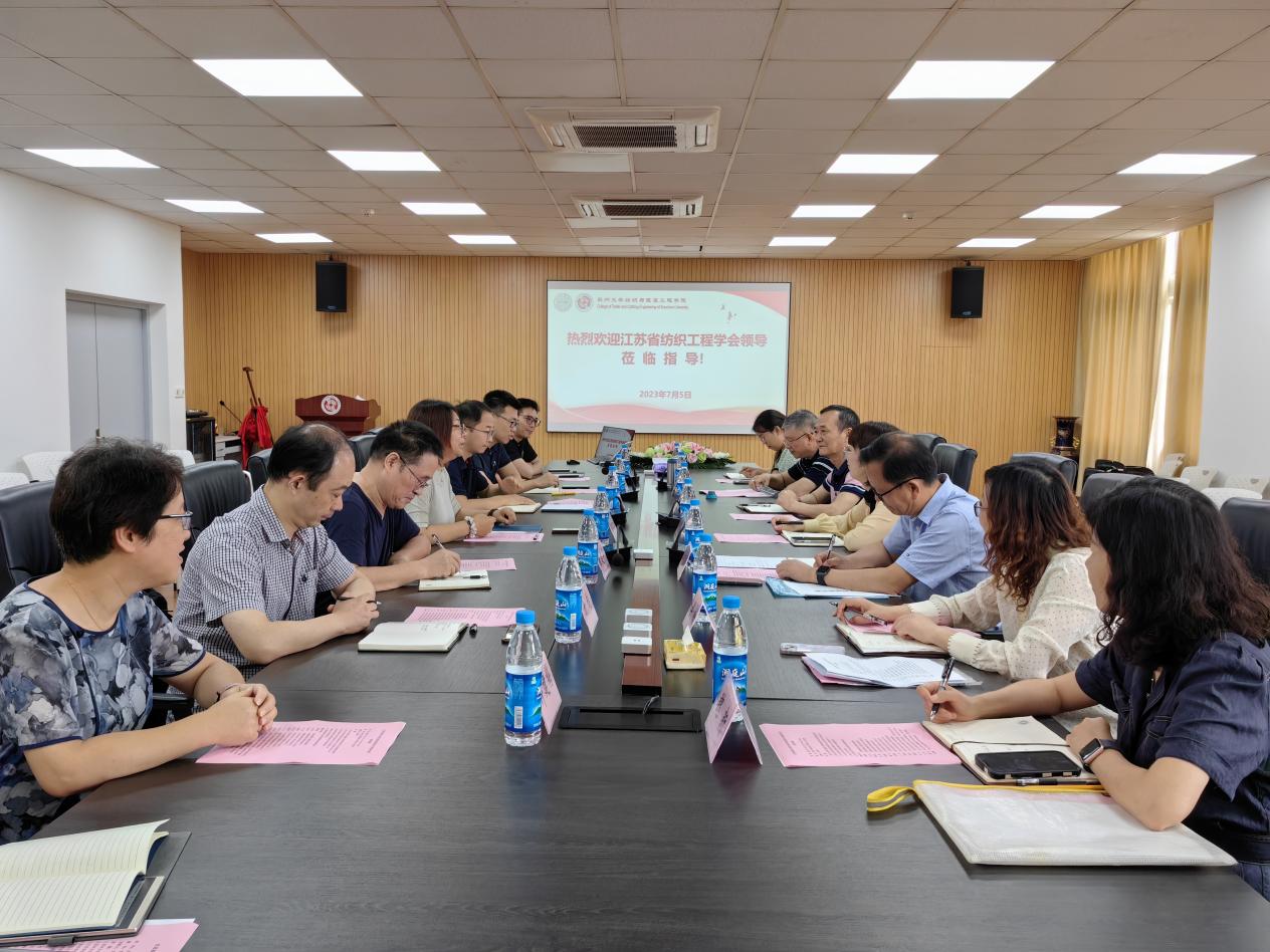 7月5日上午,江苏省纺织工程学会理事长周洪溶、秘书长王志杰、副秘书长李梅一行莅临我院调研交流并指导工作,苏州市纺织工业协会秘书长吴庭浩、苏州大学科学技术协会秘书处王龙、纺织与服装工程学院副院长关晋平、院长助理方剑和魏凯等陪同出席会议。会议由关晋平主持。