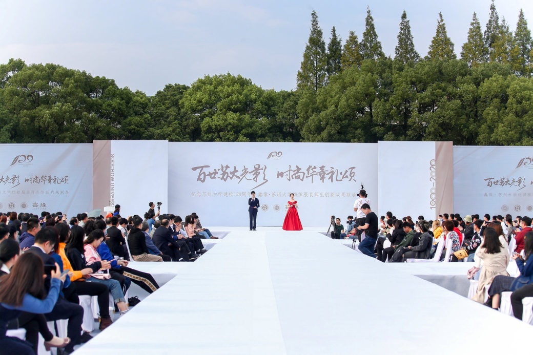 2020年10月20日,为庆祝苏州大学建校120周年,纺织与服装工程学院在苏州大学天赐庄校区(北校区)隆重举行“鑫缘·苏州大学纺织服装师生创新成果联展”。中国丝绸协会名誉会长杨永元,中国纺织服装教育学会常务副会长倪阳生,中国服装协会常务副会长杨金纯,江南大学原副校长高卫东,鑫缘茧丝绸集团股份有限公司党委副书记、纪委书记陈忠立,苏州大学党委常委、党委宣传部部长陈晓强以及来自全国各地纺织丝绸行业协会和企业界的领导与专家,来自全国30多所高校的纺织服装学院领导,学校相关职能部门领导,纺织与服装工程学院领导班子,学院师生代表出席活动。
