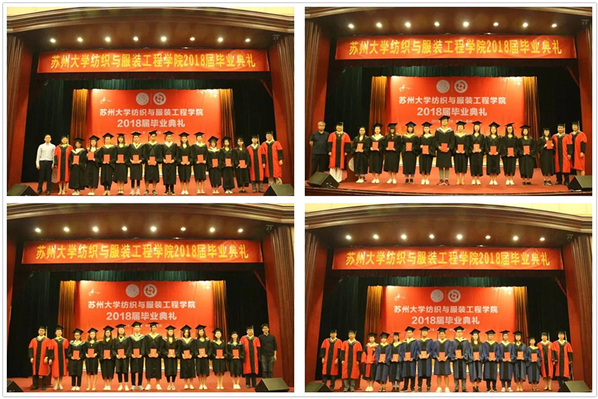 2018年6月28日上午8点30分,纺织与服装工程学院2018届毕业典礼在苏州大学本部敬贤堂举行。纺织与服装工程学院院长潘志娟;学院党委书记董召勤;学院副院长王祥荣;学院副院长、江苏省产业技术研究院纺织丝绸研究所副院长孟凯;学院办公室主任司伟;纺织工程系系主任陈廷;轻化工程系系主任唐人成;服装设计与工程系系主任蒋孝峰;学院总实验室主任李刚;学院导师代表王国和、徐岚、眭建华、冯岑、尚笑梅、王文利;14纺织班主任张德锁;服装设计与工程系副主任、14服装班主任卢业虎;院学工办副主任、14级辅导员、14轻化、非织班主任季彦斐;院团委副书记、15级研究生辅导员蒋闰蕾;学院团委书记刘海以及院学工办老师赵伟出席毕业典礼。