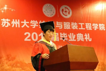 荣获“苏州大学我最喜爱的老师”的教师代表冯岑在随后的发言中向毕业学子给予了三条建议:坚持理想、保持活力、努力奋斗,并在最后表示纺院永远是毕业学子温暖的家和坚强的后盾。