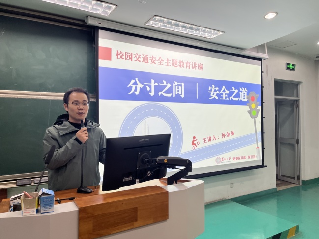 为提高同学们的校园交通安全意识,预防校园交通事故,11月26日晚六点,苏州大学纺织与服装工程学院(紫卿书院)在工科楼207教室举办以“分寸之间,安全之道”为主题的校园交通安全教育讲座。本次讲座由苏州大学党委保卫部(保卫处)政治保卫科孙金强主讲,2023级与2024级全体本科生参加。