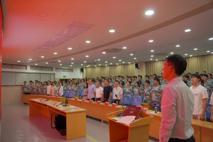 伴随着激昂的国歌声,全体师生肃立齐唱,开学典礼正式拉开帷幕。