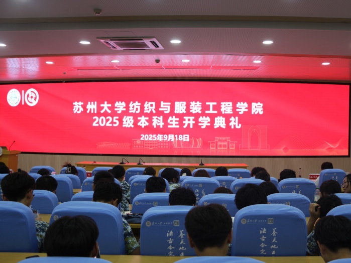 9月18日晚,苏州大学纺织与服装工程学院(紫卿书院)2025级本科生开学典礼在北校区工科楼报告厅举行。学院党委书记肖甫青,院长张克勤,副院长陈廷,2025级班主任和班主任助理,行政人员和辅导员代表出席开学典礼。2025级全体本科生参加活动。开学典礼由学院党委副书记、副院长甄勇主持。
