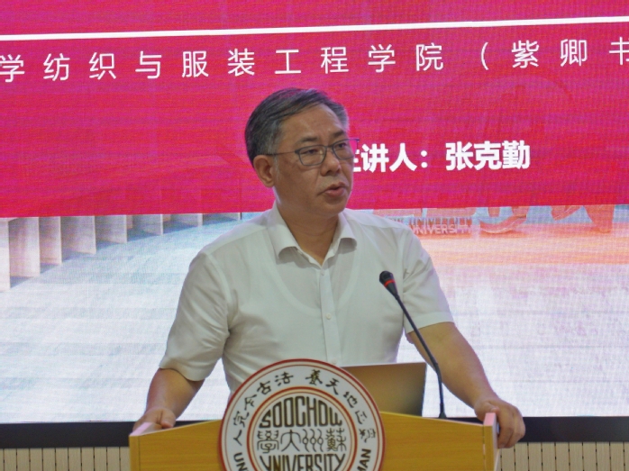 开学典礼结束后,院长张克勤为全体新生讲授“院长第一课”。他详细介绍了纺织行业发展,围绕“纺织服装产业现状前景”、“学科专业发展与师资队伍”、“人才培养方案与成效”等六个方面详细讲解了学院办学优势与特色,强调了纺织类学科对社会发展的重要性,鼓励新生传承发扬“紫卿精神”,坚定科学报国理想,弘扬开拓创新精神,踏实学好专业知识,努力成为纺织行业栋梁。
