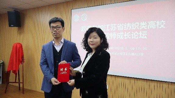 苏州大学纺织与服装工程学院和江苏省纺织工程学会对本次论坛召开给予大力支持,院长张克勤致欢迎词,表达了对三位专家及参会教师代表的热烈欢迎。江苏省纺织工程学会办公室主任魏新宣读组建新一届江苏省纺织工程学院青工委的决定,并为新一任青工委主任张岩、副主任及秘书长颁发证书。
