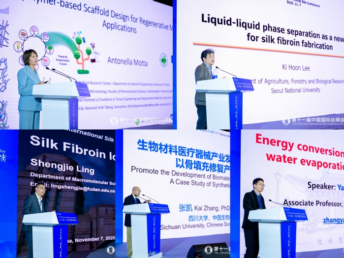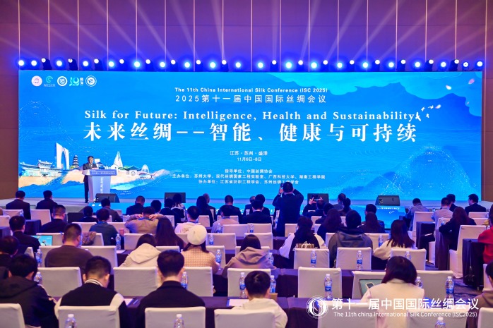 2025年11月6日至8日,第十一届中国国际丝绸会议(ISC 2025)在苏州盛泽召开。大会由中国丝绸协会指导,苏州大学、现代丝绸国家工程实验室、广西科技大学和湖南工程学院主办,江苏省纺织工程学会、苏州市丝绸工程学会协办。来自中国、意大利、韩国、日本、新加坡等国家和地区的现代丝绸领域的专家学者们以“未来丝绸:智能、健康与可持续”为主题,深入探讨,共话合作。