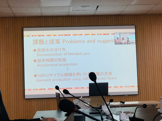 2020年12月16日下午,天赐庄校区工科楼B座422室,苏州大学纺织与服装工程学院服装设计与工程专业与日本共立女子大学服装设计专业通过ZOOM共上一堂课,双方进行了 “中日未来百年时尚设计项目”的学生汇报。此次课程共建由中方戴晓群老师和日方古川贵雄老师发起,中方参与指导教师7名,学生26名;日方学生21名,中日双方共12个小组轮流进行了汇报。