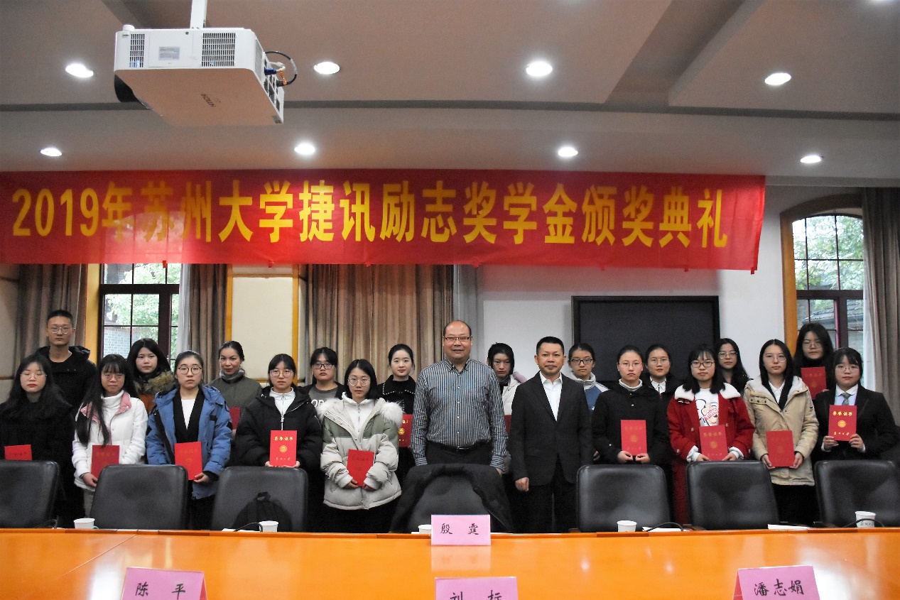 11月29日上午,苏州大学捷讯励志奖学金颁奖典礼在校本部红楼会议中心201会议室举行。捷讯控股有限公司董事、总经理殷霆,我校党委常委、副校长刘标,校学生工作部(处)副部(处)处长陈平,纺织与服装工程学院、紫卿书院院长潘志娟以及师生代表共同参加了颁奖典礼。典礼由纺织与服装工程学院党委书记董召勤主持。
