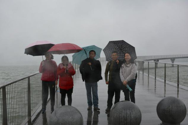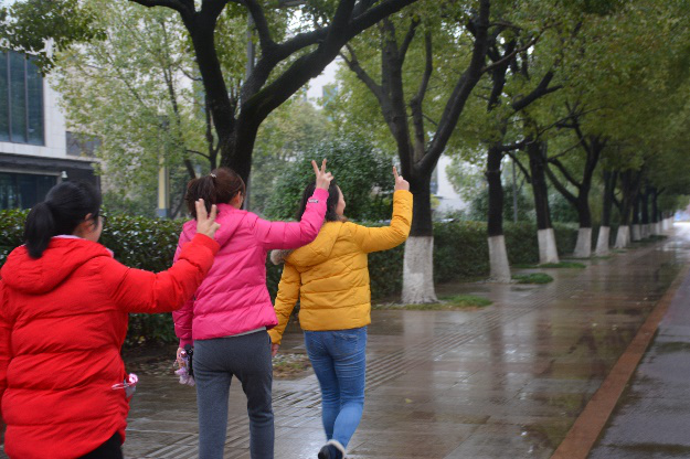 12:30,参与教师齐聚苏大北校区南门,步行前往环金鸡湖步道。在金鸡湖音乐喷泉广场,进行了抽签分组,随后徒步比赛正式开始。金鸡湖音乐喷泉为起点,途经湖滨大道、风之园、李公堤、望湖角等,至金水湾浅桥结束。虽然一直下着雨,但教职工们的积极性没有丝毫影响,他们用热情和欢笑给金鸡湖步道带来了生机和活力,给这个清冷的雨天带来了些许的温暖。
