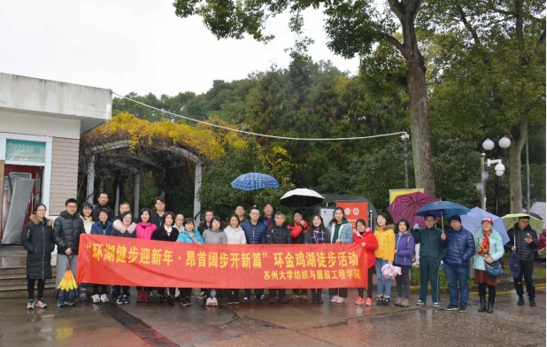 “环湖健步迎新年•昂首阔步开新篇”纺织与服装工程学院教职工环金鸡湖徒步活动倡导了积极、健康、阳光、向上的生活方式,丰富了教职工们的业余生活,让他们在繁忙而紧张的工作之余度过了一个愉快且有意义的一天,同时也进一步培养了教师的合作精神,增强了学院的凝聚力。