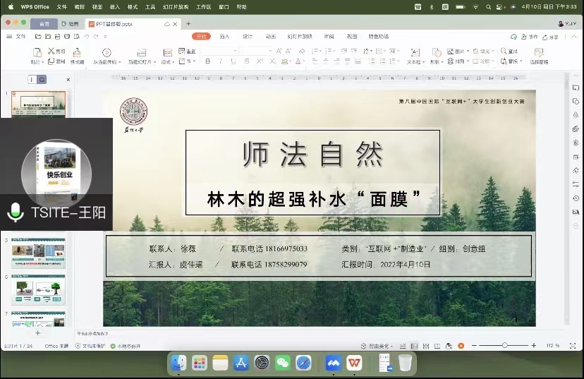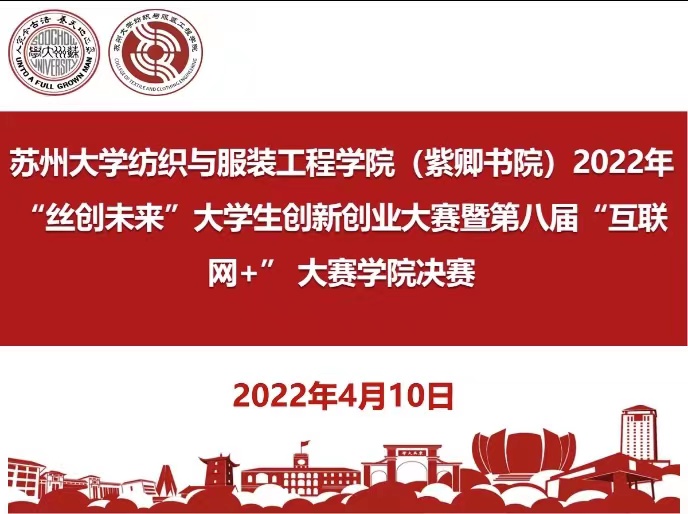 4月10日下午13:00,第四届苏州大学纺织与服装工程学院(紫卿书院)“丝创未来”大学生创新创业比赛决赛暨“互联网+”大赛学院选拔赛在腾讯会议线上举行。本次活动由苏州大学纺织与服装工程学院团委举办,学院学生科技协会承办。