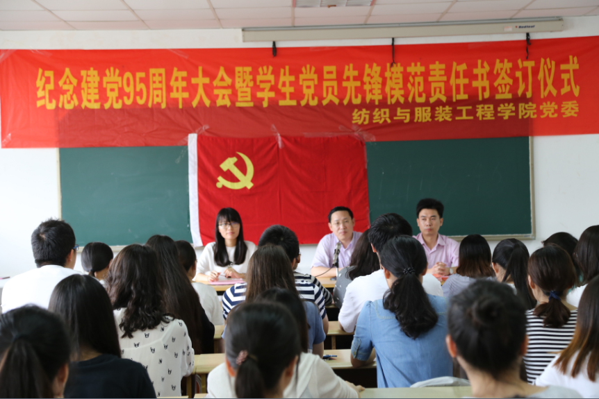 为深入学习贯彻习近平总书记系列重要讲话精神,推动全面从严治党向基层和党员延伸,进一步落实好党员目标考核制度 ,促进党员自我约束,使党员在各项工作中发挥先锋模范作用,2016年6月22日纺织与服装工程学院召开了“两学一做”学习教育之“明目标树形象 争做先锋模范—学生党员先锋模范目标管理责任书签订仪式”,学院本科生党支部书记和全体学生党员出席了会议,会上,全体本科生党员向学院党委递交了《学生党员先锋模范目标管理责任书》。