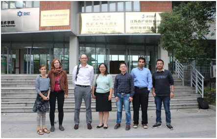 报告会后,Emiel den Hartog教授参观了现代丝绸国家工程实验室,随后与关晋平副院长、卢业虎副教授、我院外事秘书吴菲非老师就未来合作领域作了深入座谈,并与我院与欧盟联合培养博士项目SMDtex 2013级博士生交流。关院长简要介绍了学院的基本情况,重点介绍了近年来学院国际化人才培养情况及相关国际合作交流项目,并与Emiel den Hartog教授就双方在本科生、研究生、教师合作研究等不同层次可能开展的合作交流进行了深入沟通和探讨,为我院的国际合作交流寻求新途径,从而进一步推动我院国际合作交流工作的开展。