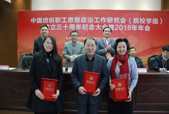 会上,嘉宾为中国纺织职工思想政治工作研究会(院校学组)历任会长颁发了荣誉证书。