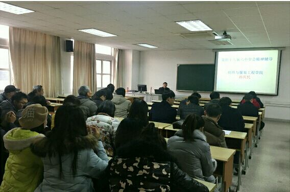 12月29日下午,纺织与服装工程学院召开贯彻党的十八届六中全会精神学习会,学院党委书记孙庆民向学院教工党员宣传解读了十八届六中全会精神。