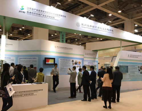 此次展会,研究所对江苏省产业技术研究院纺织丝绸技术研究所以及苏州大学纺织与服装工程学院进行了宣传,并重点展出了“蚕丝蛋白微纳米美容贴”、“高效集约化现代养蚕关键技术研究及产业化”、“天然染料生态染色印花成套加工技术”、“生物质化学纤维纺织品及加工关键技术”等项目成果,以及“迪肯-南通先进纤维材料研究院”及衍生企业“江苏纳纤新材料科技有限公司”主要研发产品。
