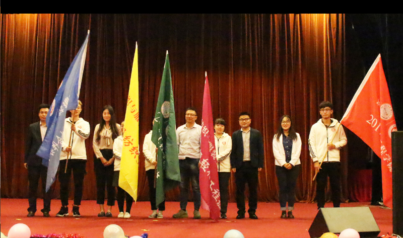 汇演开始前,由2017级纺院各班班主任为各个班班长授予班旗并合影留念。随后由纺院2017级辅导员孙晓旭老师宣读2017各班副班主任名单,由蒋闰蕾老师颁发聘书并合影留念。