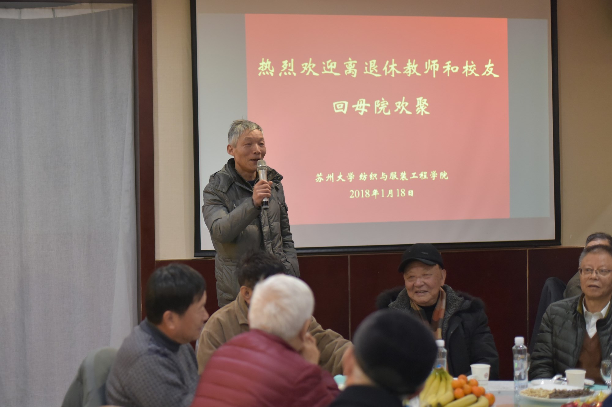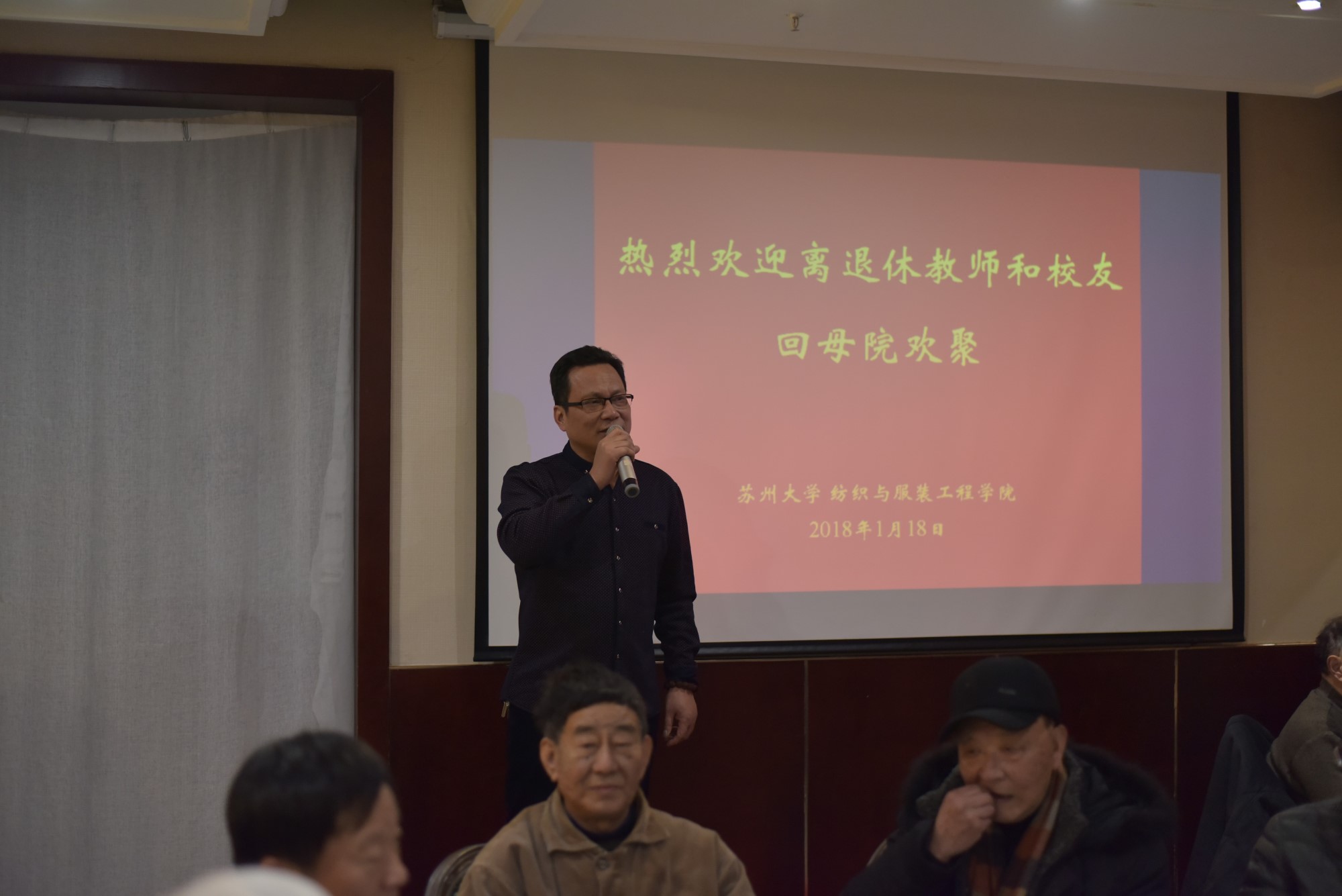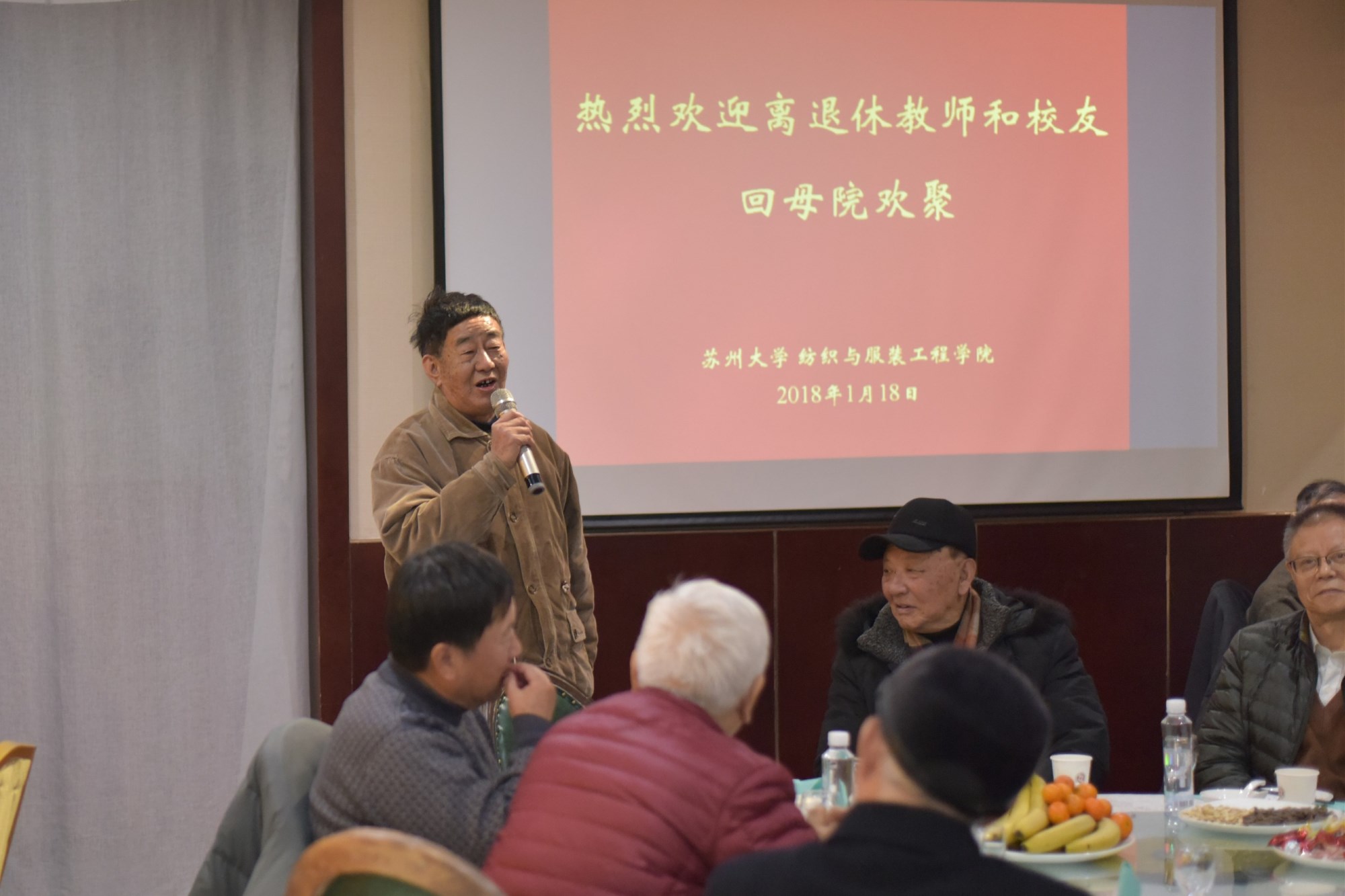 “新年伊始,万象更新”,2018年1月18日上午10时,纺织与服装工程学院离退休教职工迎新座谈会在“万家灯火”会议厅温馨举行。学院党委董召勤书记、潘志娟院长、院工会周正华主席、办公室司伟主任以及校友代表朱品荣、高荣芳、曹志庄同59名学院离退休教师欢聚一堂,共叙苏纺情谊,共话学院发展。座谈会由董召勤主持。
