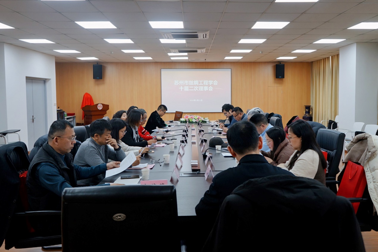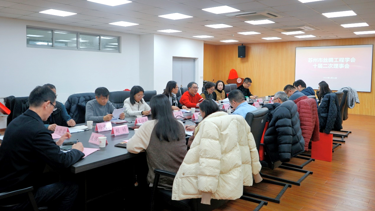 2024年1月31日,苏州市丝绸工程学会十届二次理事会在苏州大学召开。理事长张克勤、秘书长关晋平、副理事长王晨、张振雄、丁力进等17位理事及监事左保齐出席了会议。会议由关晋平主持。