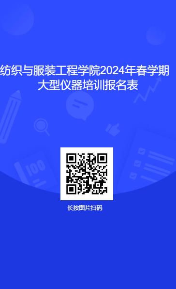 纺织与服装工程学院总实验室将于2024年3月-4月进行大型仪器上机培训,为保证培训效果,现统计每场培训参与的人数,请参加培训的同学根据自己的科研需求扫码报名相应的培训项目。