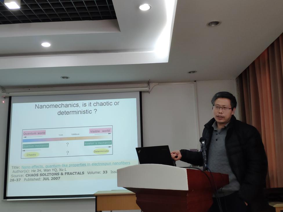 “我们团队的主要研究方向是纺织数学,就是利用数学的研究方法尝试解决纺织工程领域内关键的科学问题。”何吉欢教授一直致力于数学、力学等基础学科在纺织学科领域的应用,以“蜘蛛纺丝原理与仿生探索”为题做出了分享。与此同时他还鼓励青年老师拓宽科研工作面,开展纺织交叉学科领域的研究。