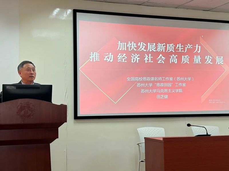 为进一步学习贯彻全国两会精神,2024年3月20日纺织与服装工程学院举办党委理论学习中心组(扩大)学习会暨2024年第一期预备党员培训班示范党课。本次党课邀请了马克思主义学院院长田芝健教授讲授“加快发展新质生产力 推动经济社会高质量发展”专题讲座。学院党委理论学习中心组成员,各支部书记、支部委员、预备党员培训班学员和本科生社区第二党支部全体党员参加了此次示范党课。