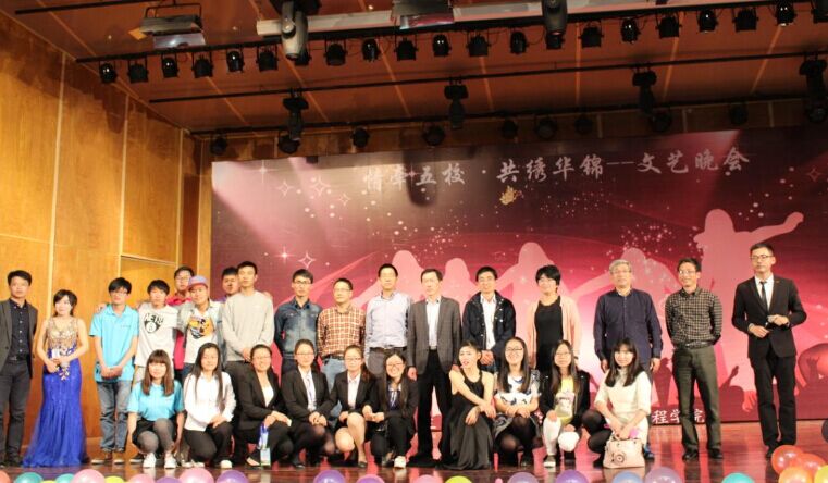 晚上7:00,五校文艺晚会在时尚亮眼的时装秀中拉开帷幕。首先是《中国好声音》苏州站冠军张正献唱《all of me》,歌声温暖全场;浙江理工大学带来的《实验室健身操》调侃了研究生生活的喜怒哀乐,引得大家共鸣而不断鼓掌;南通大学选送的街舞《短发》热情奔放、青春活力,迎来喝彩不断;东华大学谱写朗诵了《东华之歌》,激昂的语调饱含着对美丽的东华的爱;江南大学的暖男带来了歌曲《一路上有你》,动听的歌声让他收获了满满的尖叫。晚会上更有黑白搭配、温暖而又搞笑的校园小品《同桌的她》、深情感性的吉他弹唱《T1213121》、婉约动听的歌曲献唱《back to december》、《我们好像在哪儿见过》、俏皮多情的印度肚皮舞和含蓄高雅的傣族舞蹈《雨竹林》。整场晚会高潮迭起,呼喊声此起彼伏。活动插入的游戏“爱的抱抱” 让观众欢呼雀跃,再掀晚会高潮。最后,文艺晚会在五校同学合唱的《明天会更好》中落下帷幕,温暖的旋律演奏着今日相聚的欢乐和对明天再聚的期盼。