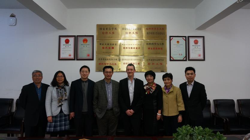 4月7日下午,Bill Sampson 教授为学院2015级硕士研究详细介绍了曼彻斯特大学材料学院的科研队伍与科研项目,并做了题为“天然材料及其研究方向”的讲座。讲座结束后,学院潘志娟院长陪同参观了现代丝绸国家重点工程实验室,详细介绍了纺织与服装学院的学科建设、科研平台和研究成果。