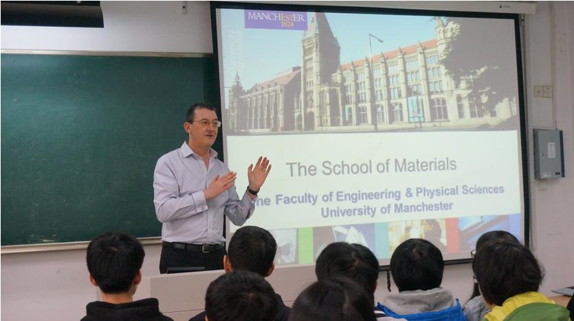 4月7日,英国曼彻斯特大学材料学院院长Bill Sampson 教授和材料学院中方项目主管Chen Xiao Gang博士一行访问学院,上午Bill Sampson 教授一行与2014级和2015级纺织类(中外合作办学)(纺织工程)班,及部分意向申请出国深造的同学进行了交流。Bill Sampson 教授介绍了英国曼彻斯特大学材料学院纺织相关学科的设置、师资、课程、科研等方面的情况,介绍了学院目前在曼彻斯特大学留学的学生的学习和生活情况,并对同学们的学习方法等提出了建议。Bill Sampson 教授还与学生进行了互动交流,回答了学生们感兴趣的问题。