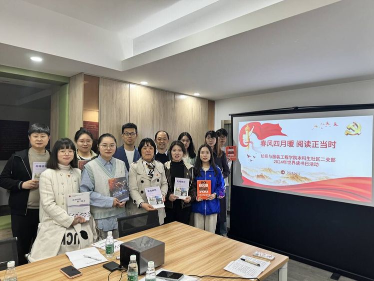 最是书香能致远。习近平总书记在致首届阅读大会贺信中指出,阅读是人类获取知识、启智增慧、培养道德的重要途径,可以让人得到思想启发,树立崇高理想,涵养浩然之气。在第29个“世界读书日”到来之际,纺织与服装工程学院(紫卿书院)本科生社区二支部联合学院教工二支部于4月17日在紫卿书院举行“春风四月暖,阅读正当时”读书日活动。学院党委副书记、副院长虞岚,本科生社区二支部、教工二支部党员出席活动。活动由本科生社区二支部支部书记季彦斐主持。