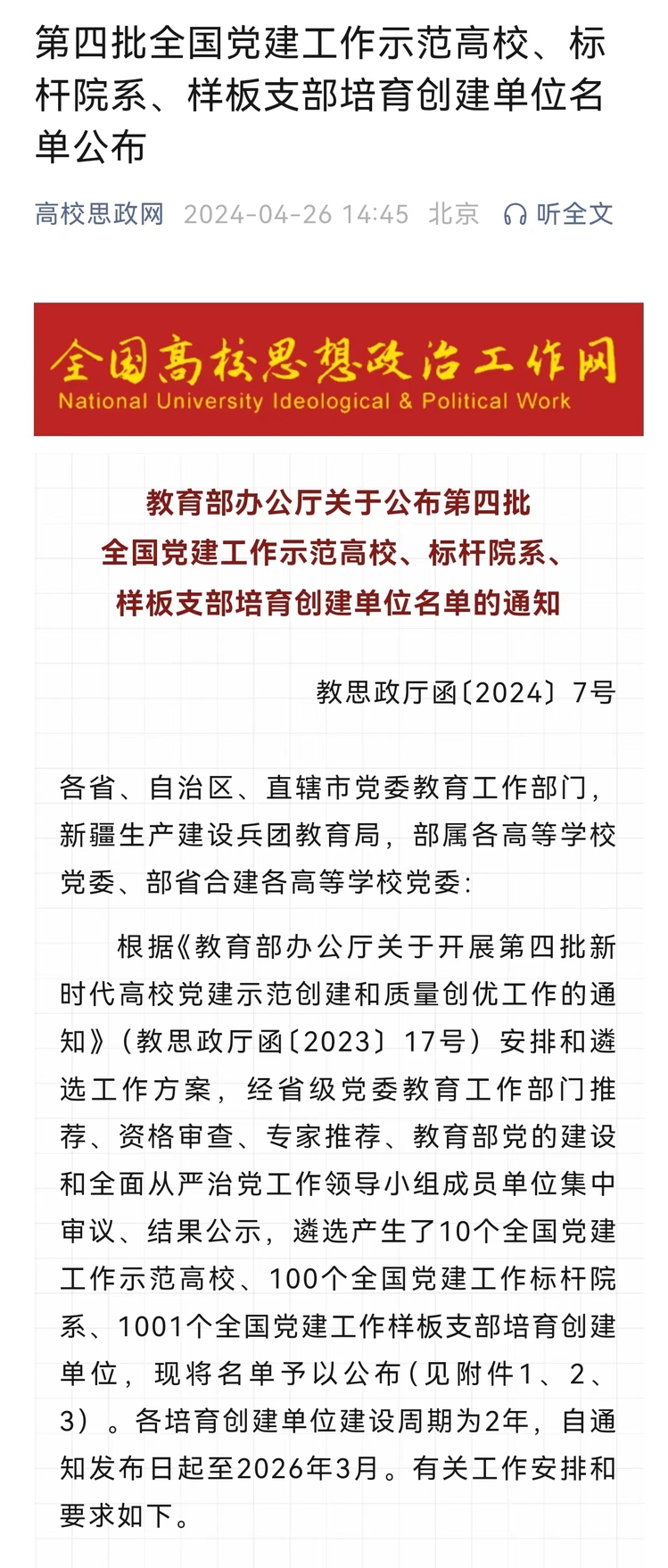 近日,教育部办公厅发布关于公布第四批全国党建工作示范高校、标杆院系、样板支部培育创建单位名单的通知,我院本科生社区第二党支部成功入选“全国党建工作样板支部”培育创建单位。