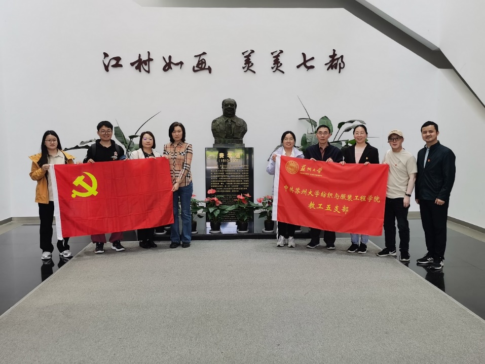 为进一步学习贯彻习近平总书记在全国两会期间的系列重要讲话精神,大力发展新质生产力、牢牢把握高质量发展,激励党员同志坚定信念、砥砺前行。4月24日,苏州大学纺织与服装工程学院教工五支部前往吴江区七都镇开弦弓村,开展了“追忆桑蚕历史文化,赓续现代丝绸发展”主题党日活动。