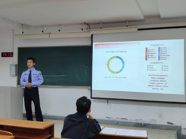 许海龙幽默风趣的语言,吸引了同学们的注意力,大家认真听讲,感到受益匪浅,深入了解了电信网络诈骗的手法,提高了对网络诈骗的防范意识,增强了自身防诈骗的水平和能力,并表示会将学到的内容在班级、实验室中宣传,共同提高防范能力。