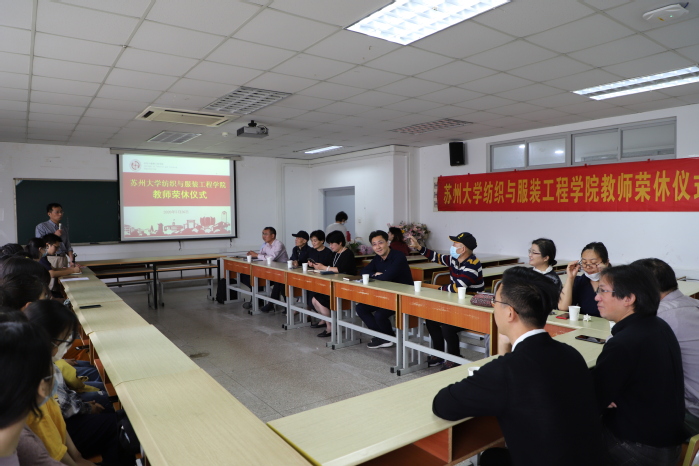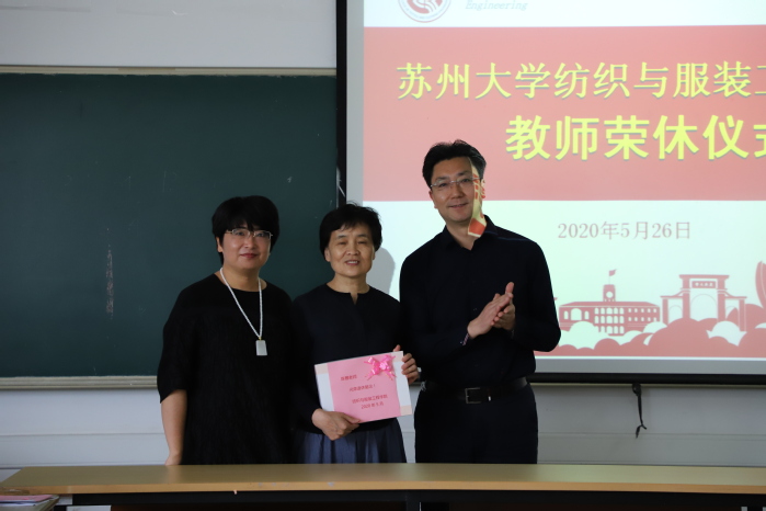 一片冰心,春风化雨;两鬓霜华,桃李芬芳。5月26日,苏州大学纺织与服装工程学院教职工荣休仪式在北区工科楼222室暖心举行。学院党委书记董召勤,院长潘志娟,副院长关晋平,副院长严俊,副院长、副书记严明,学院继续教育中心主任刘伟星,服装设计与工程系主任蒋孝锋,学院退休党支部、退休教师代表黄水慕,青年教师代表洪岩和学生代表等共同见证了这一光荣时刻。荣休仪式由学院工会主席戴宏钦主持。