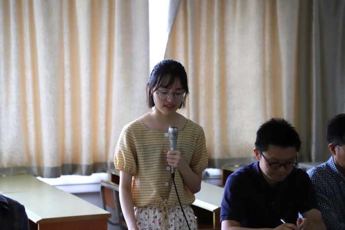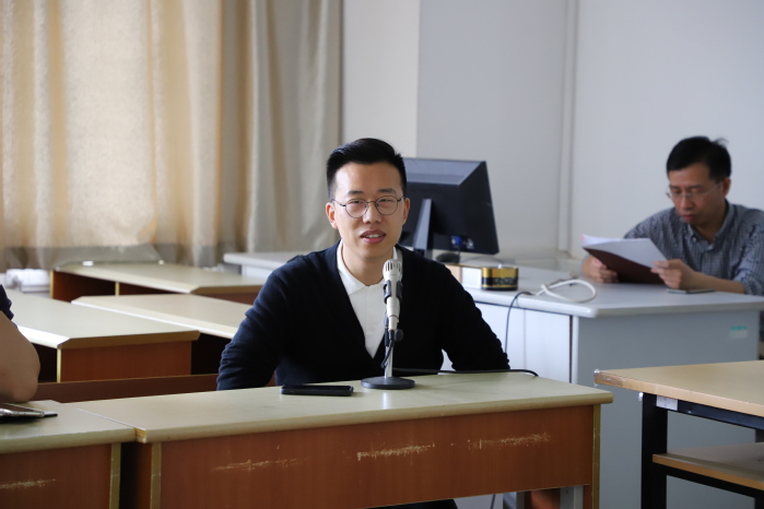 服装系洪岩老师代表青年教师发言,他回忆了自己走上教师岗位以来,一位位前辈教师的言传身教,使他实现从“学者”到“师者”的转变。他们传递的,是日积月累的经验方法,也是兢兢业业,诲人不倦的师德师风。他表示青年教师将学习前辈精神,把纺服的师道师风薪火相传。