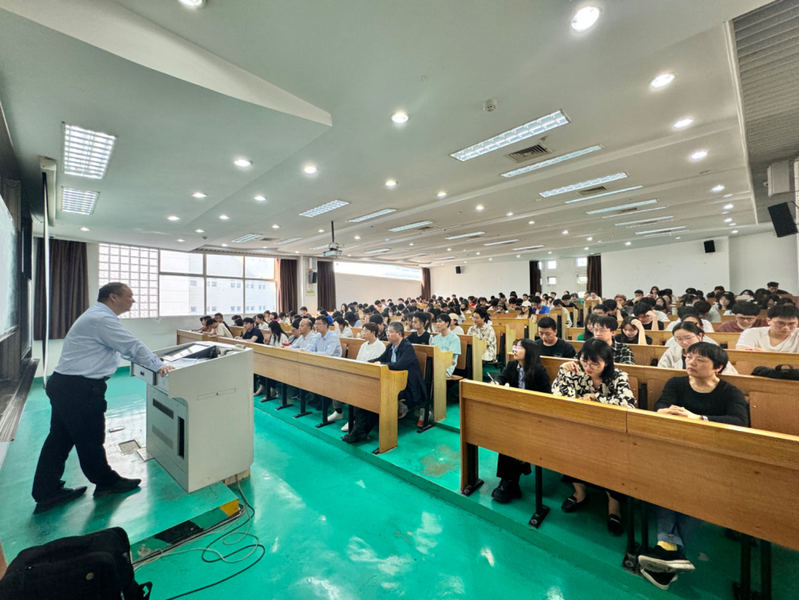 姚建林首先深入剖析了当前的就业形势,强调就业是经济发展的“晴雨表”、社会稳定的“压舱石”,要把做好就业工作摆到突出位置。他结合苏州大学实际情况,指出同学们要敏锐地洞察当前就业市场的动态变化,在充满不确定性的就业市场中坚持提升个人综合素养这个确定性因素,从而实现高质量就业。同时,姚建林鼓励同学们要紧跟时代步伐,积极关注行业发展趋的最新动态和趋势,坚持终身学习的理念,培养自主性和批判性思维。最后,姚建林寄语同学们,希望大家正确认识自我,在进行自我提升的同时也要关注国家和社会的发展,以开放的心态和广阔的视野迎接未来,努力成为一名德才兼备的新时代青年。