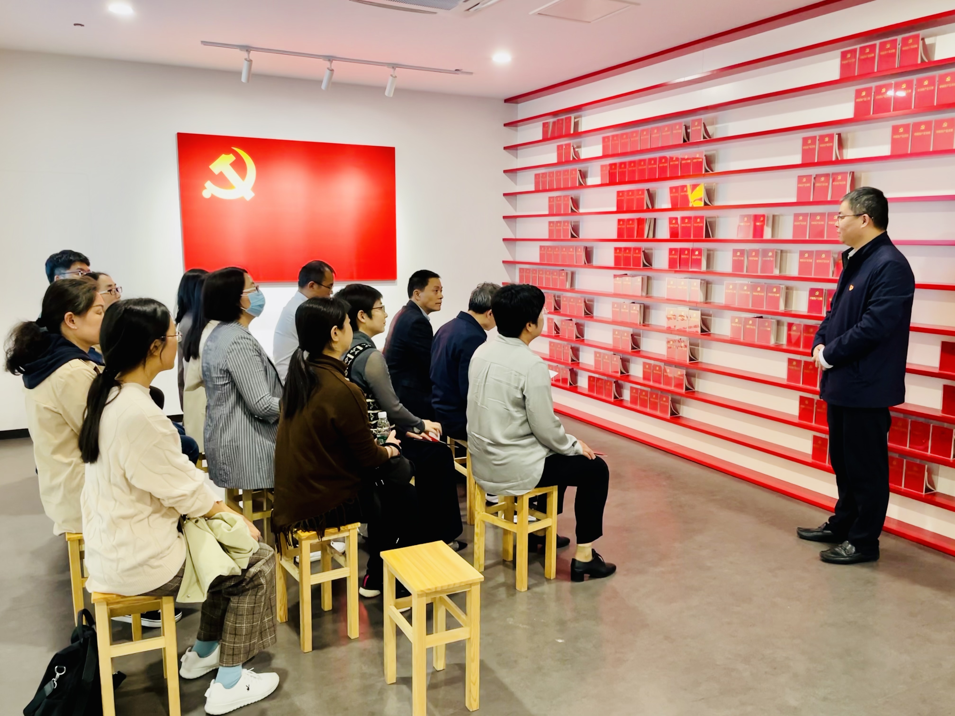在初心馆内,支部围绕“学党史、铭初心、知使命”进行了主题学习。活动由纺织与服装工程学院党委书记肖甫青主持。
