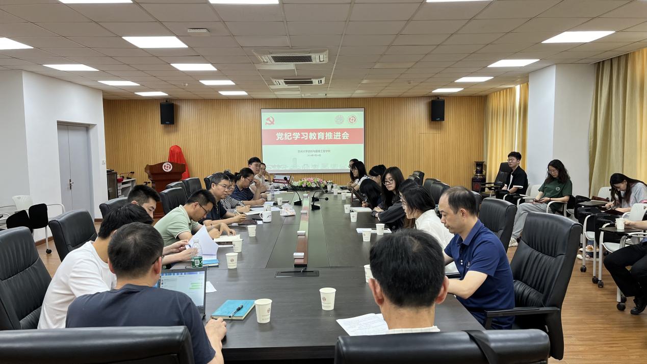 为进一步推进党纪学习教育,2024年5月30日下午,纺织与服装工程学院党委召开党纪学习教育推进会,党委书记肖甫青、党委副书记、副院长虞岚、党委纪检委员、副院长关晋平及各支部书记、组织委员、纪检委员参会。会议由肖甫青主持。